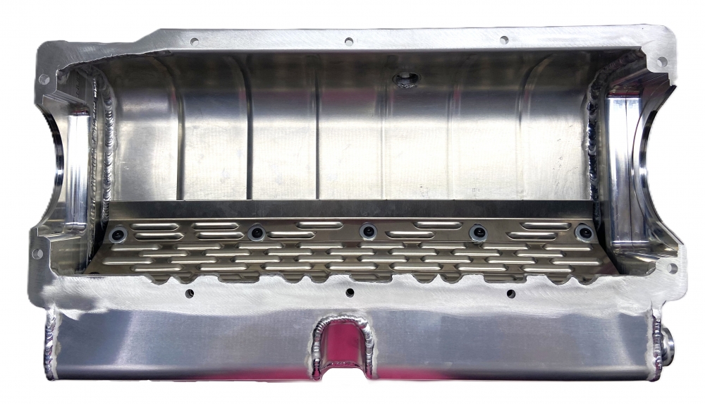 Description:This aluminum dry sump oil pan is for the Small Block Chevrolet years 1986-2003 with a one piece rear main seal engines. This oil pan features: