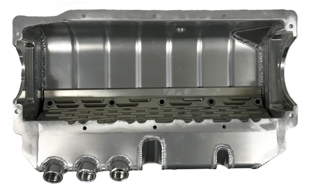 Description:This aluminum dry sump oil pan is for the Small Block Chevrolet years 1986-2003 with a one piece rear main seal engines. This oil pan features: