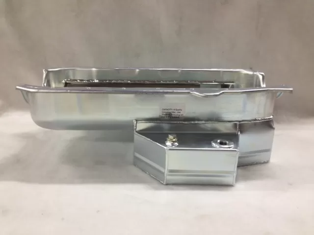 This oil pan is designed around the Chevrolet Camaro front stub with the engine set back.
