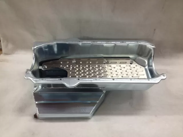 This steel wet sump oil pan is for the Small Block Chevrolet years 1957-1985 with the two piece rear main seal engines. This oil pan features: