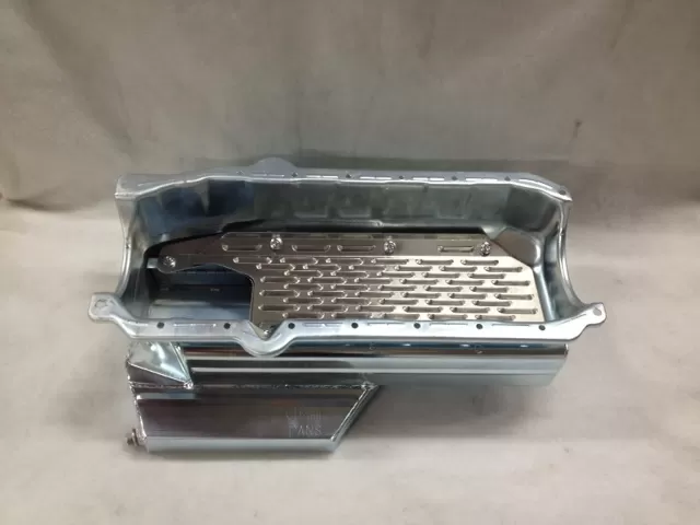 This oil pan is designed around the Chevrolet Camaro front stub with the engine set back.