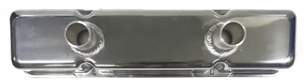 Polished aluminum valve cover for the Small Block Chevrolet. This valve cover features: