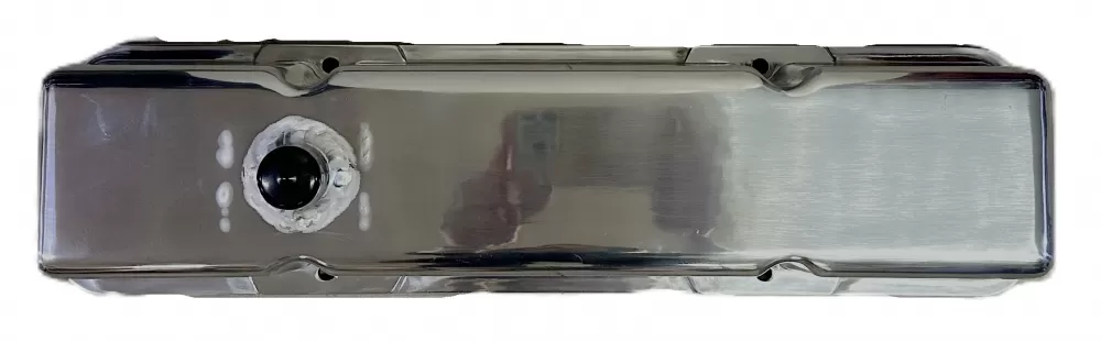 Polished aluminum valve cover for the Small Block Chevrolet. This valve cover features: