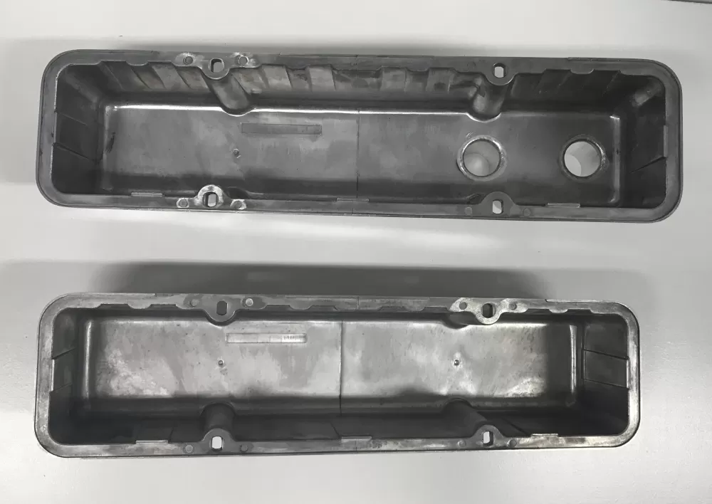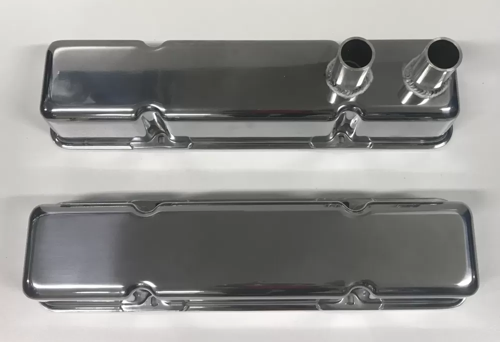 Polished aluminum valve cover set for the Small Block Chevrolet. This valve cover set features: