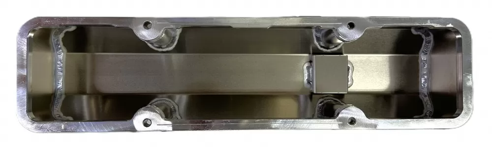 Right side fabricated aluminum valve cover for the Small Block Chevrolet. This valve cover features: