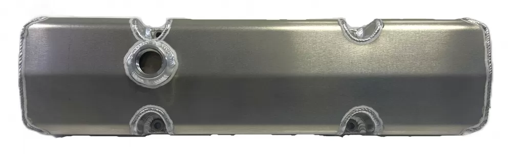 Right side fabricated aluminum short valve cover for the Small Block Chevrolet. This valve cover features: