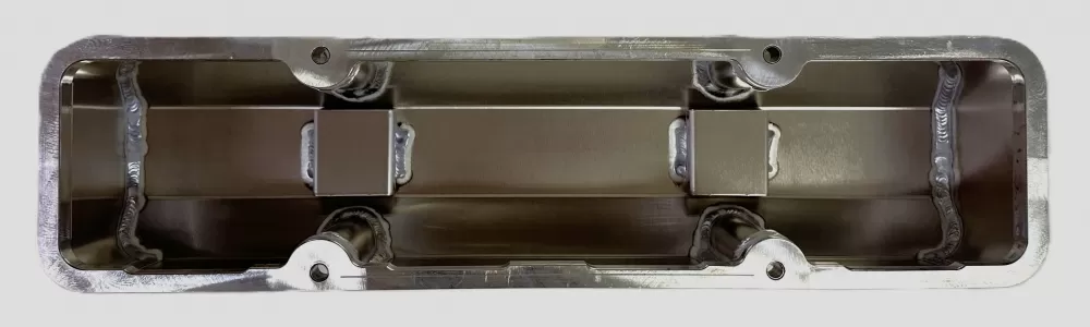 Left side fabricated aluminum valve cover for the Small Block Chevrolet. This valve cover features: