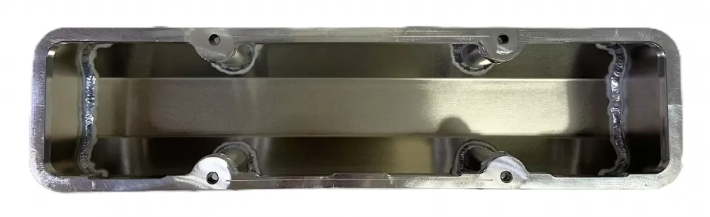 Left side fabricated aluminum valve cover for the Small Block Chevrolet. This valve cover features: