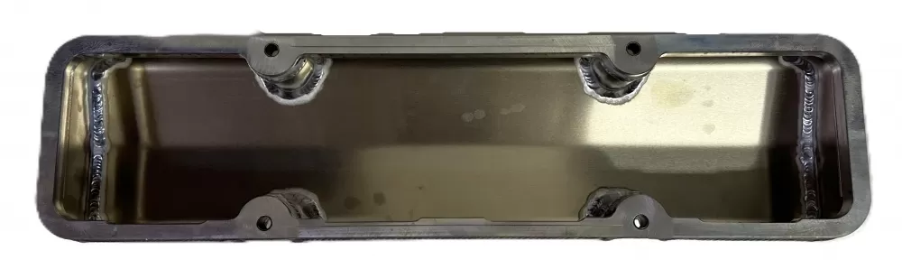 Left side fabricated aluminum short valve cover for the Small Block Chevrolet. This valve cover features: