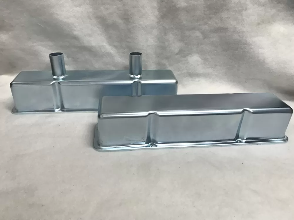 Stamped steel valve cover set for the Small Block Chevrolet. This valve cover set features: