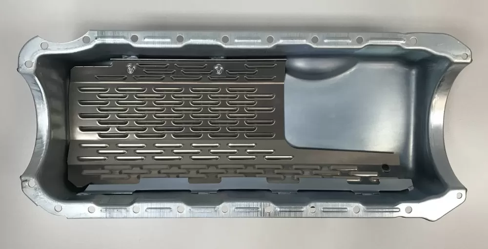 This steel dry sump oil pan is for the Big Block Chevrolet two piece rear main seal Mark IV engines. This oil pan features: