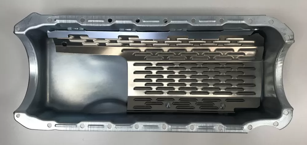 - a horsepower saving louvered windage tray which allows for maximum oil flow to the pickup scavengers