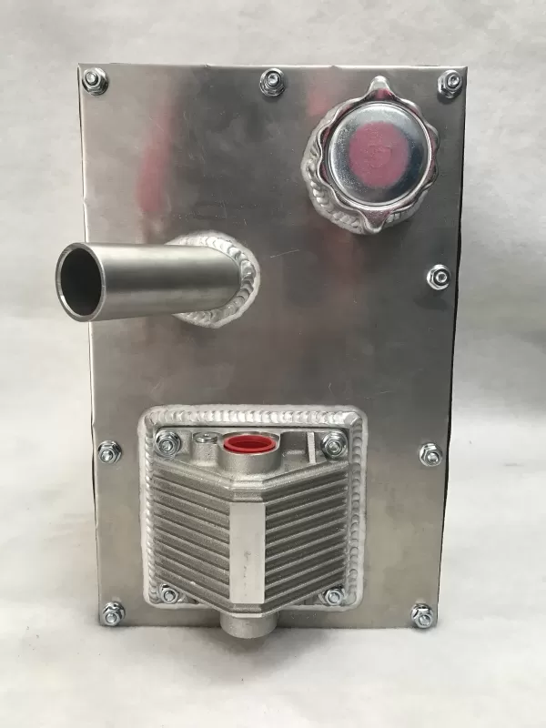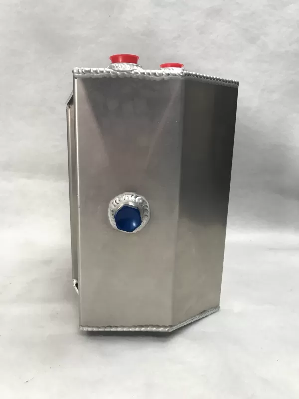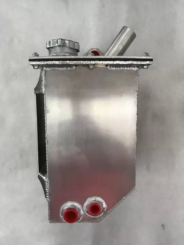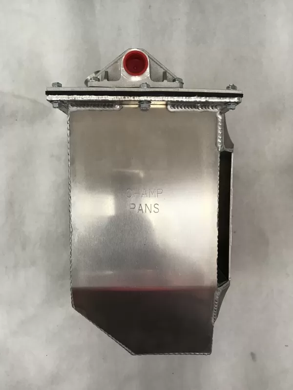 This is an aluminum dry sump tank with vent on top. This tank features: