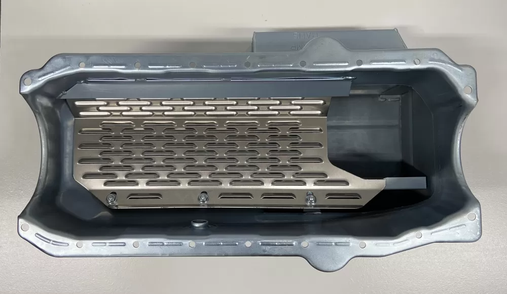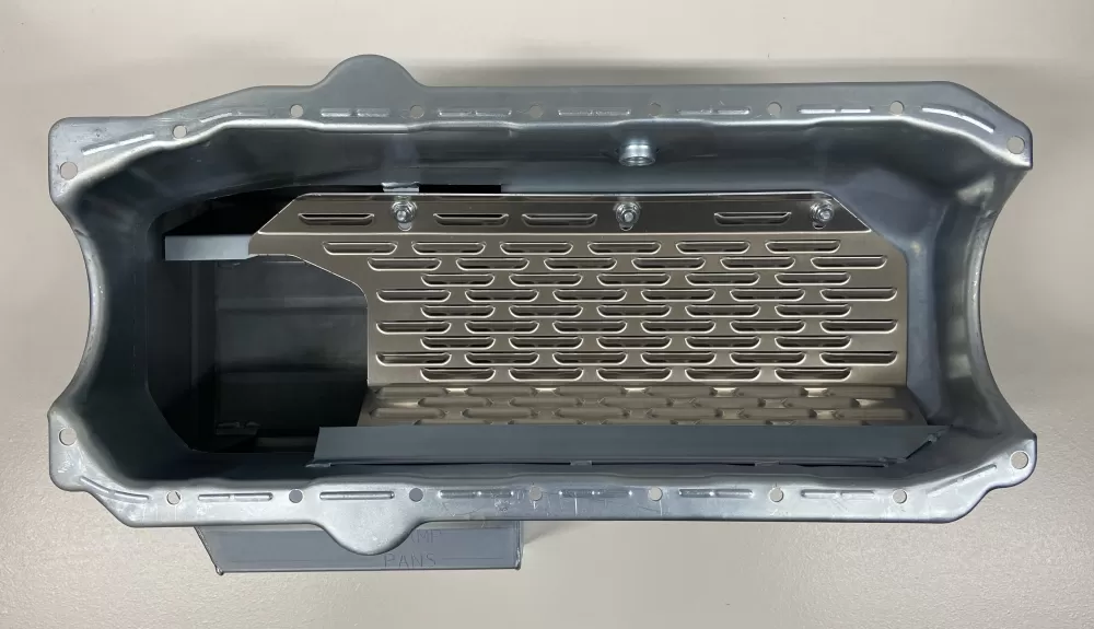 This steel wet sump oil pan is for the Small Block Chevrolet years 1957-1985 with the two piece rear main seal engines. This oil pan features:
