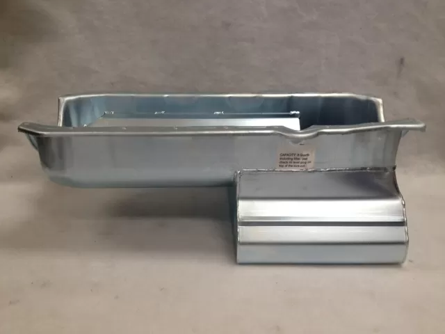 This steel wet sump oil pan is for the Small Block Chevrolet years 1957-1979 with the left side dipstick engines. This oil pan features: