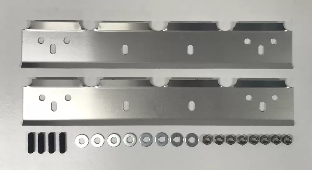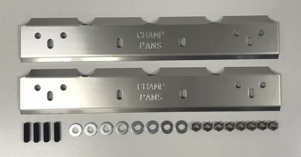 Aluminum oil deflector plates kit that will fit the Small Block Chevrolet Standard or Vortec heads and the Small Block Ford 351 Windsor. These oil deflector plates are designed to deflect oil back onto the valve spring which in turn cools the valve springs for better performance between rebuilds. This kit includes 3/8" studs and nuts.