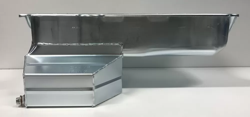 This oil pan is ideal for stock cars with cross members or rear steer linkage.