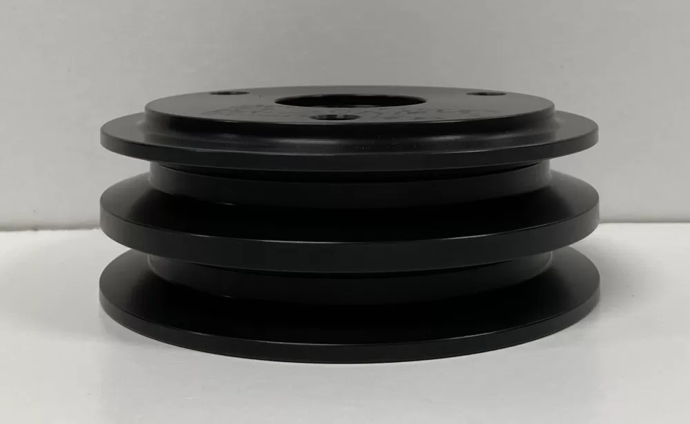 A lower pulley for the Small Block Chevrolet with the short pump. This lower pulley features:
