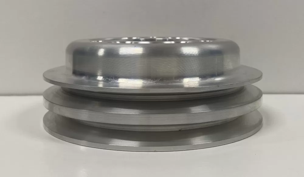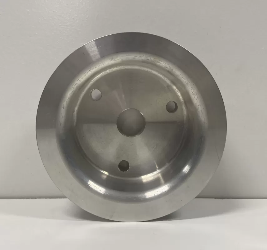 A lower water pump pulley for the Small Block Chevrolet with the long pump. This lower water pump pulley features: