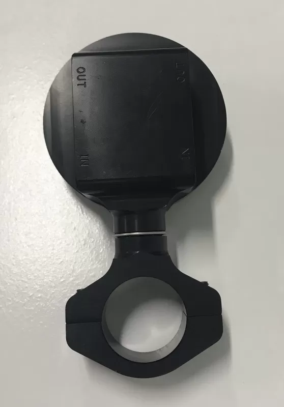 Remote oil filter mount that is anodized black. Thread is 13/16"-16 threads per inch with 1/2" NPT in/out ports.