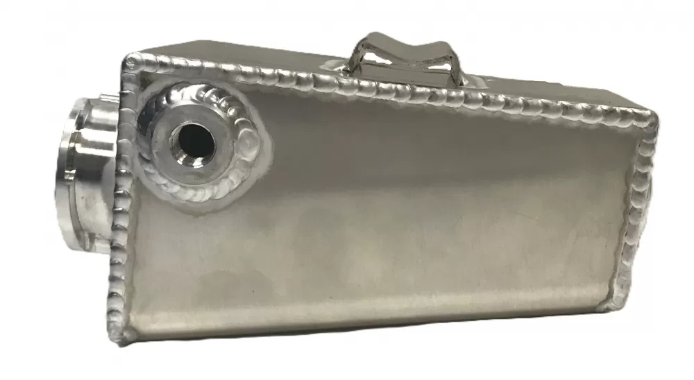 Aluminum radiator burp tank that is roll bar mounted. This tank comes with one 1/2" pipe hole and two 1/4" pipe plugs. No radiator cap included.