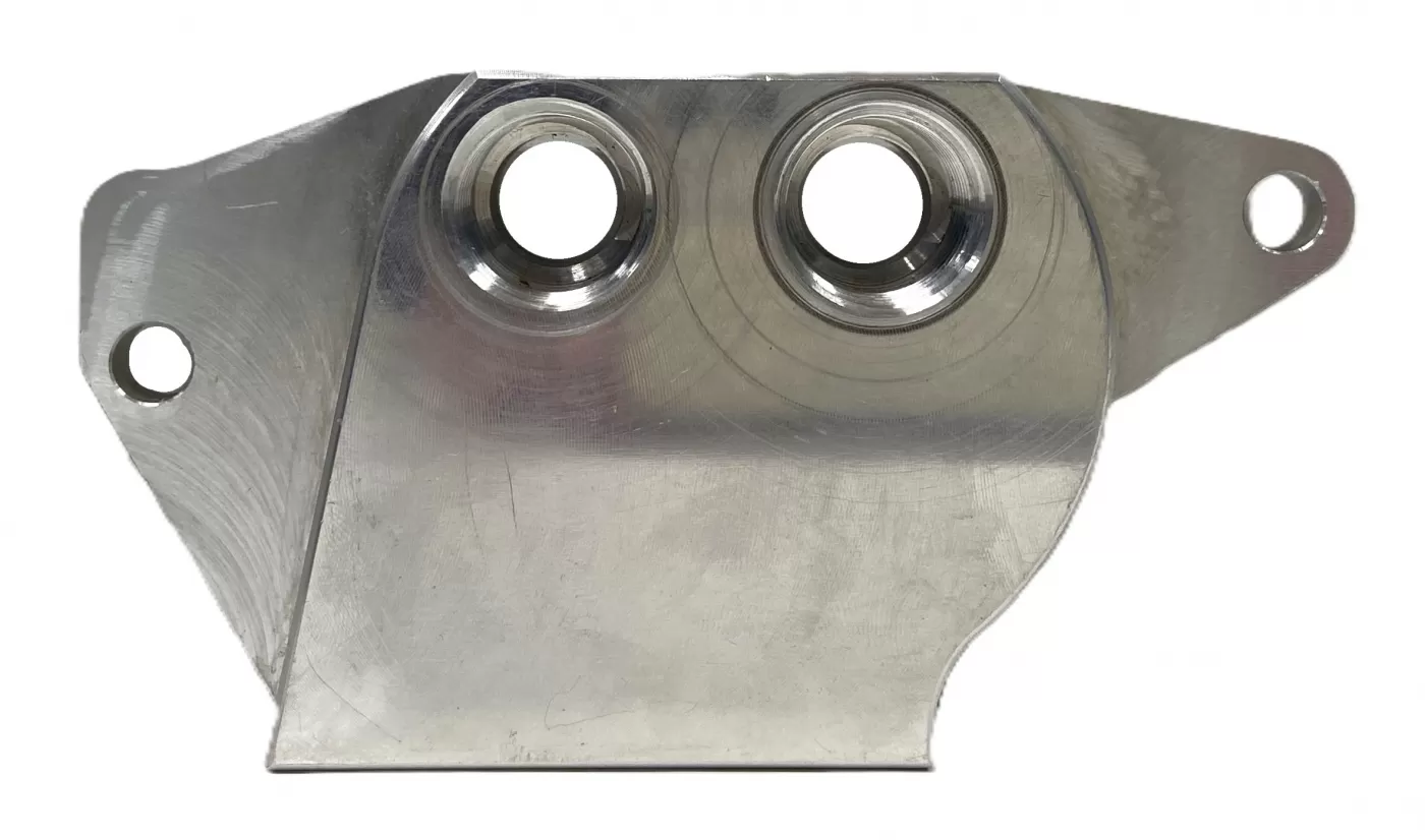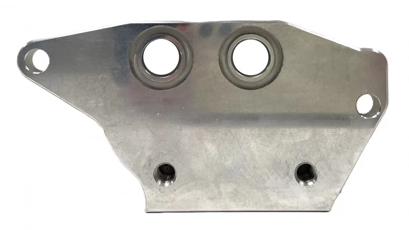 Billet aluminum remote filter block with -10 an fittings for LS1 oil pans.