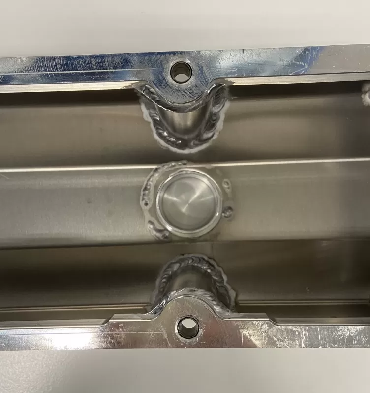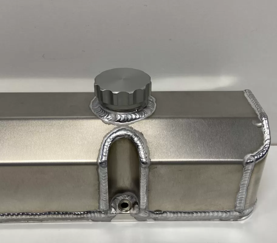 We install a 1 1/2" fill kit into any of our fabricated aluminum valve covers.
