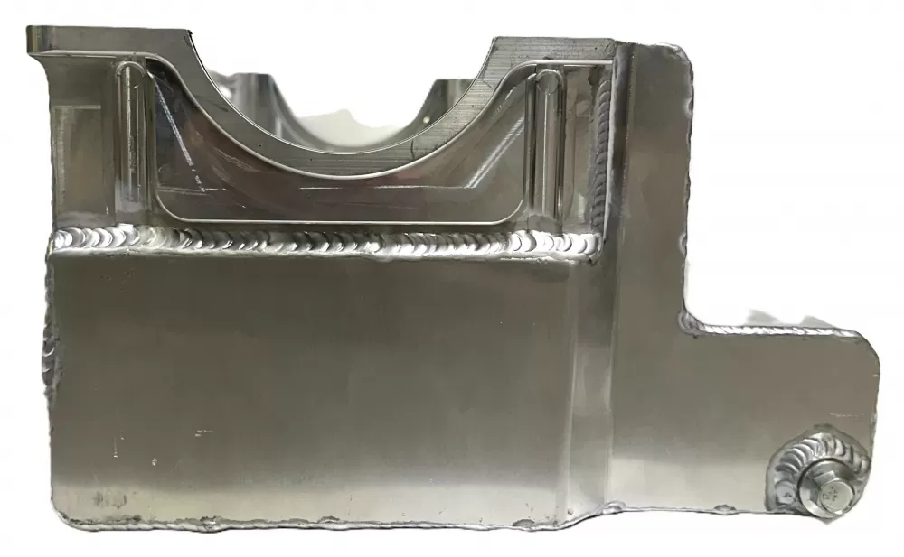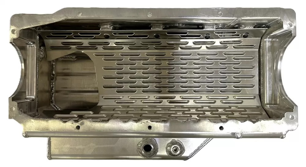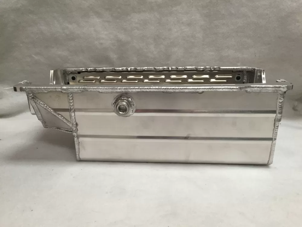 This aluminum wet sump oil pan is for the Small Block Chevrolet years 1957-1985 with the two piece rear main seal engines. This oil pan features: