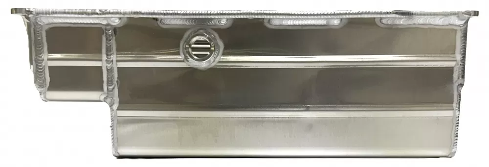This aluminum wet sump oil pan is for the Small Block Chevrolet years 1957-1985 with the two piece rear main seal engines. This oil pan features: