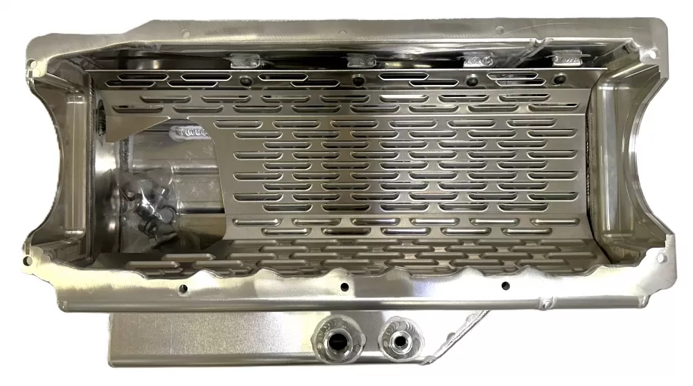 This aluminum wet sump oil pan is for the Small Block Chevrolet years 1986-2003 with a one piece rear main seal engines. This oil pan features: