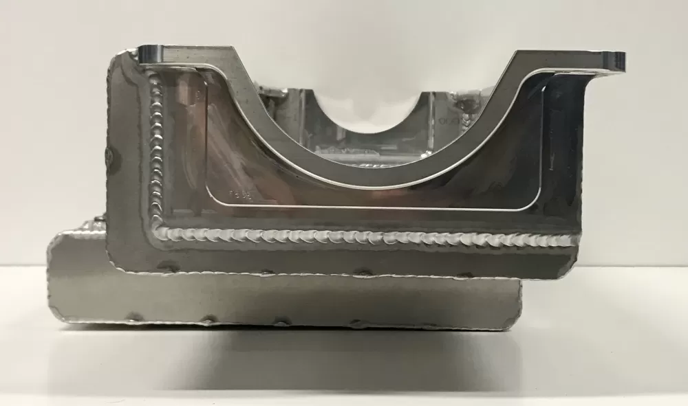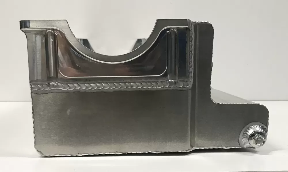 This aluminum wet sump oil pan is for the Small Block Chevrolet years 1957-1985 with the two piece rear main seal engines. This oil pan features: