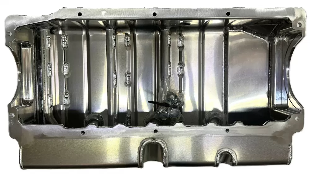 This aluminum dry sump oil pan is for the Small Block Chevrolet years 1957-1985 with the two piece rear main seal engines. This oil pan features: