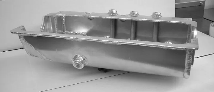 This aluminum dry sump oil pan is for the Dart Small Block Chevrolet engines with the spread rails. This oil pan features: