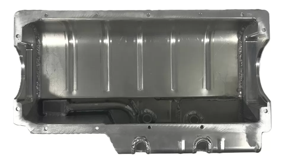This aluminum dry sump oil pan is for the Dart Small Block Chevrolet engines with the spread rails. This oil pan features:
