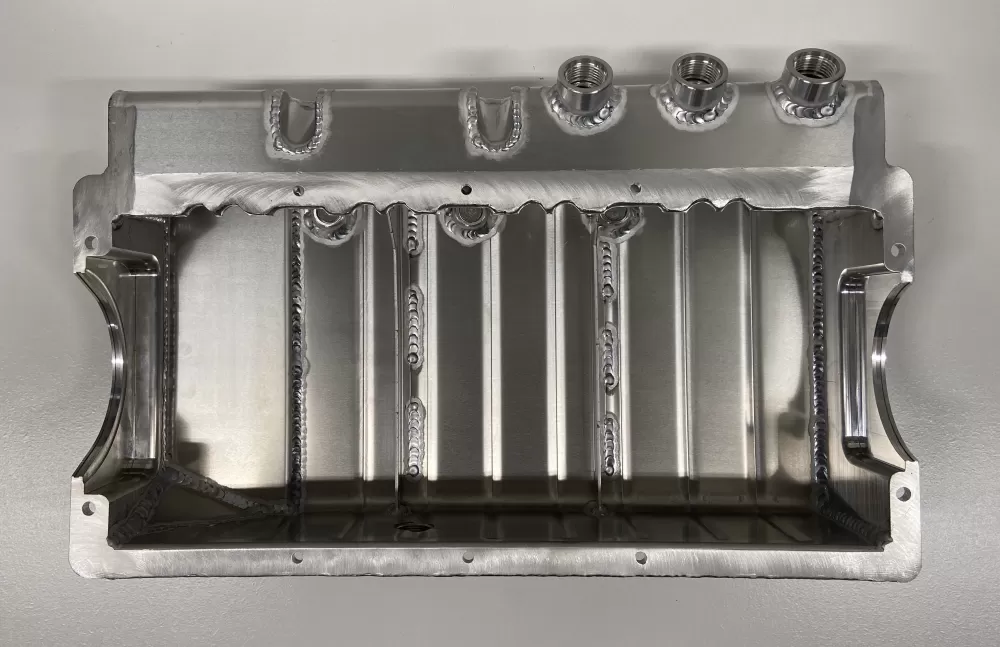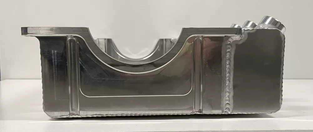 This aluminum dry sump oil pan is for the Dart Small Block Chevrolet engines with the spread rails. This oil pan features: