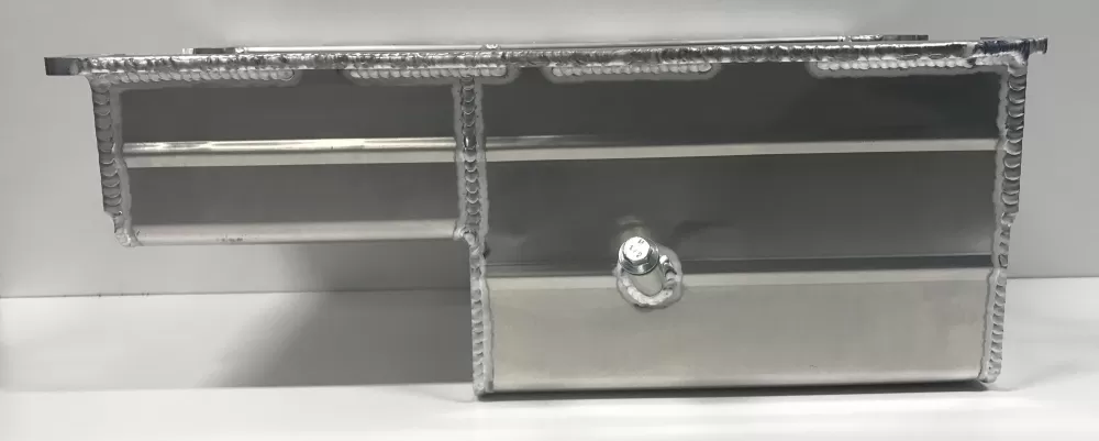 This aluminum wet sump oil pan is for the Dart Small Block Chevrolet with the spread rails. This oil pan features: