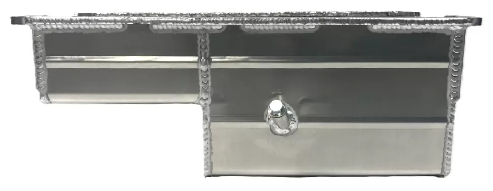 This aluminum wet sump oil pan is for the Dart Small Block Chevrolet with the spread rails. This oil pan features: