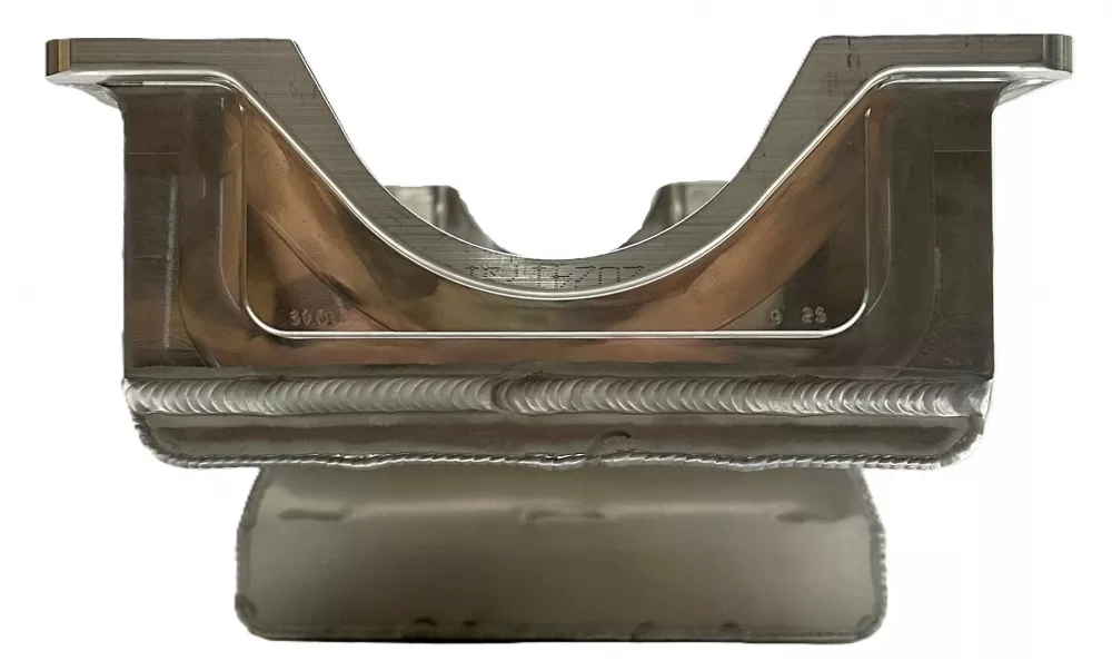 This aluminum wet sump oil pan is for the Dart Small Block Chevrolet with the spread rails. This oil pan features: