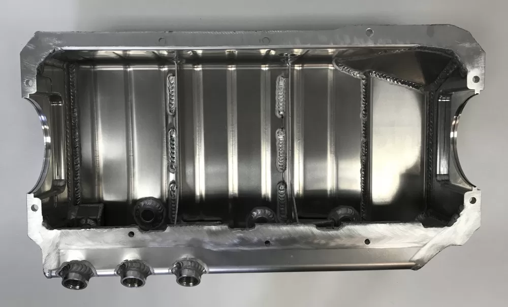 This aluminum dry sump oil pan is for the aluminum and cast iron Small Block Ford 302 engines. This oil pan features: