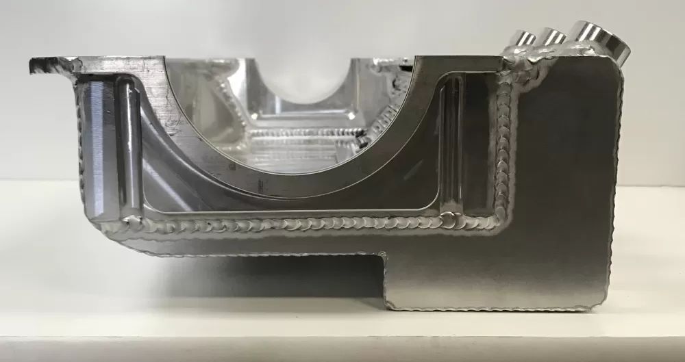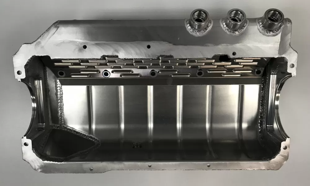 This aluminum dry sump oil pan is for the aluminum and cast iron Small Block Ford 351 Windsor and SVO engines. This oil pan features: