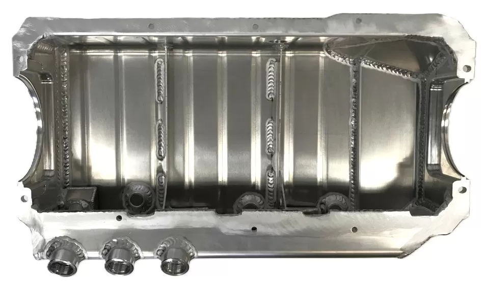 This aluminum dry sump oil pan is for the aluminum and cast iron Small Block Ford 351 Windsor and SVO engines. This oil pan features: