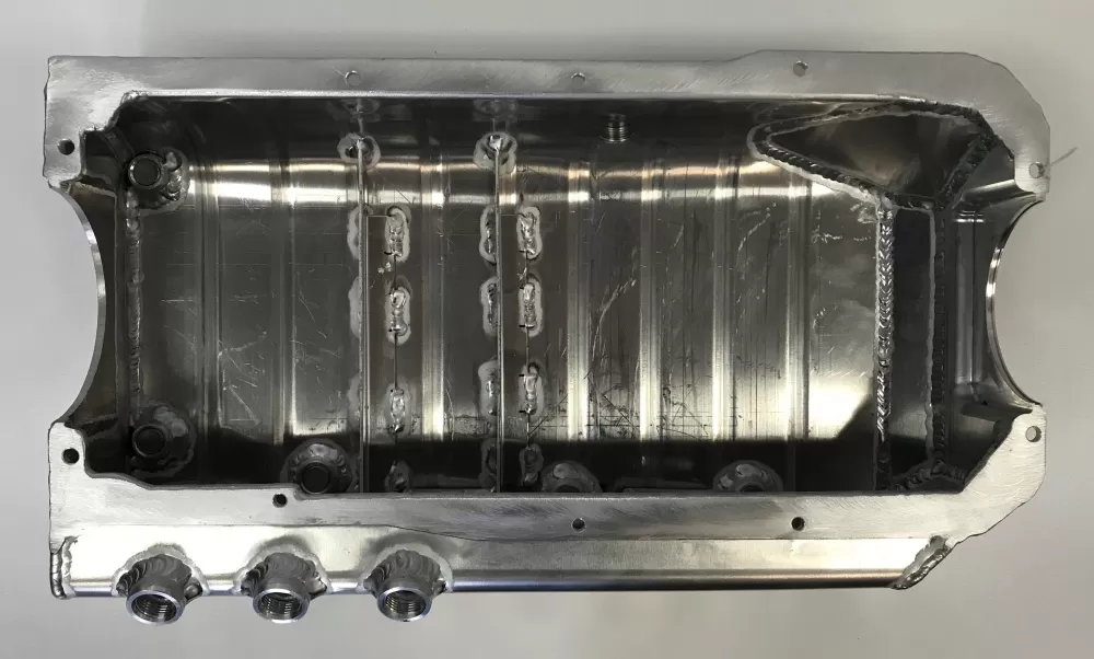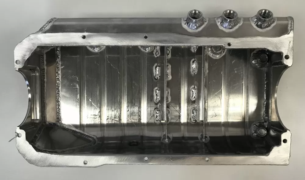 This aluminum dry sump oil pan is for the aluminum and cast iron Small Block Ford 351 Windsor and SVO engines. This oil pan features: