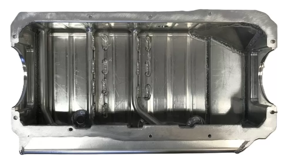 This aluminum dry sump oil pan is for the aluminum and cast iron Small Block Ford 351 Windsor and SVO engines. This oil pan features:
